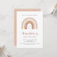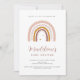 Celebra un baby shower adorable con esta invitación de arcoíris neutra en cuanto al género, que presenta una bonita ilustración de acuarela en tonos terrosos sobre un fondo blanco limpio. Ideal para celebraciones elegantes en casa, té alto, fiestas de jardín o cualquier celebración de bebé - honrando a la futura madre con estilo sofisticado.