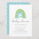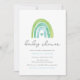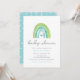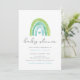 Invite a sus huéspedes a su ducha de bebé con esta hermosa invitación de Baby Shower Rainbow and Hearts con un bonito arco iris acuático y un fondo con motivos. Adecuado para una madre que espera un bebé o cambia el color de fondo para que se adapte a su fiesta. © Mini Impresiones Moi
