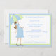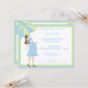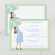 El frente y la parte trasera de esta ducha de bebé tiene una madre a la moda sosteniendo un paraguas rayado. Los colores de coordinación completan el marco de este diseño contemporáneo. Hay un montón de texto de personalizable para personalizar esta invitación con la información de su fiesta.