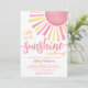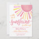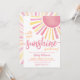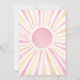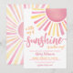 Celebra la próxima llegada con esta brillante y alegre invitación para baby shower con tema de sol. En la parte superior, un gran sol con rayos vibrantes en tonos amarillos, naranjas, rosados y rojos marca el tono para una celebración alegre. La frase "¡Un pequeño rayo de sol está en camino!" se muestra en una mezcla juguetona de fuentes modernas y tipografía en negrita. La parte inferior de la invitación incluye todos los detalles del evento, diseñados en una combinación de estilos de fuente y colores (naranja, amarillo y rosa) para que coincidan con los rayos del sol. En la parte trasera, una versión más grande del sol colorido brilla intensamente. Si prefiere una apariencia más vívida, simplemente elimine la capa blanca transparente en el editor para mejorar los colores del sol. Aunque este diseño se inclina ligeramente hacia una bebé, sigue siendo neutral en cuanto al género, lo que lo hace perfecto para celebrar a la futura madre y dar la bienvenida a un nuevo pequeño rayo de sol en el mundo. Un poco de mezcla de boho, retro y moderno. Invitación para baby shower con tema de sol "Un pequeño rayo de sol" para bebé niña en amarillo, naranja, rojo y rosa.