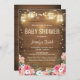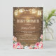 ♥ ¡Una divertida y rústica invitación de baby shower Coed! Flores sobre un fondo de madera.