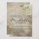 Invitación de Baby Shower Rústica con Encaje Deteriorado. Una invitación de baby shower shabby chic rústica y muy elegante que presenta diferentes flores verdes y crema con adornos metálicos en ellas y alrededor de ellas, elementos parecidos a perlas adornan la parte superior e inferior y un encaje victoriano elegante y un pájaro en una rama adornan esta invitación sobre un fondo marrón rústico. Una excelente Invitación de Baby Shower rústica vintage con encaje deteriorado para esa boda rústica o vintage y estas invitaciones son económicas pero lucen increíbles.