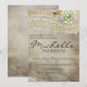 Invitación de Baby Shower con Encaje Rústico Deteriorado. Una invitación de baby shower muy elegante y rústica con estilo shabby chic que presenta diferentes flores verdes y crema con adornos metálicos en ellas y alrededor de ellas, elementos parecidos a perlas adornan la parte superior e inferior y un encaje victoriano elegante y un pájaro en una rama adornan esta invitación sobre un fondo marrón rústico. Una excelente Invitación de Baby Shower con Encaje Rústico Deteriorado Vintage para esa boda rústica o vintage y estas invitaciones son económicas pero lucen increíbles.