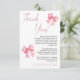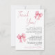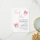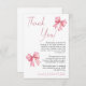 Tarjeta de agradecimiento de baby shower con lazo rosa. Gracias por unirse a nosotros para nuestra encantadora fiesta de baby shower adornada con deliciosos lazos rosas. Siguiendo con el tema, esta nota de agradecimiento presenta caligrafía elegante y un caprichoso motivo de lazo rosa, capturando la dulzura de esta celebración especial. Esperamos compartir más recuerdos con usted a medida que nuestro pequeño paquete de alegría crece.