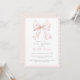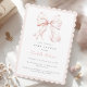 Dulce invitación de baby shower que presenta un elegante lazo rosa. Elija los bordes ondulados para un acabado caprichoso.