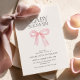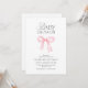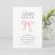 Celebre la próxima llegada de una dulce bebé con esta invitación de baby shower elegante y atemporal. Con un suave lazo de satén rosa y tipografía de letra cursiva elegante, este diseño combina el encanto clásico con el minimalismo moderno. El fondo blanco limpio permite que los detalles delicados brillen, creando un aspecto refinado perfecto para un tema de baby shower tradicional, chic o femenino.