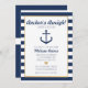 Baby Shower Nautical Invita - diseño de anclaje con un borde de fondo a rayas. ¡Perfecto para una revelación de género!