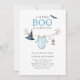 Invitación Baby Shower Cute de Halloween Esta encantadora invitación a una ducha de bebé de Halloween es la manera perfecta de dar la bienvenida a un bebé durante la acogedora temporada de otoño. Con delicadas acuarelas de un gorra de una bruja, un murciélago y un trapo azul pequeño colgados en las ramas del otoño, añade el toque correcto de sutileza espeluznante. El lúgubre titular "Un pequeño BOO es casi debido", combinado con suaves tonos neutros y sutiles elementos de Halloween, hace que esta invitación sea ideal para duchas con temática de género con un toque mágico. No deje de impresionar a sus huéspedes y de marcar la pauta para una inolvidable ducha de bebé.