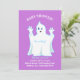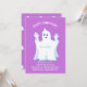 Bebé ducha linda invitación fantasma. Hay un patrón fantasma en el fondo violeta en el lado de atrás. Todos los textos y números están listos para ser personalizados.