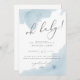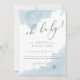Hermosa y moderna invitación de baby shower oh baby! con acuarela azul. ¡La invitación perfecta para un tema de baby shower azul!