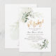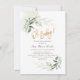 Hermosa acuarela verde de PixDezines con follaje de eucalipto y ficus enmarcado sobre panal de abeja dorado falso para esta encantadora invitación de baby shower.