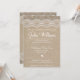 Invitación de Baby Shower de Arpillera Rústica y Encaje Antiguo. Una invitación de baby shower muy elegante y shabby chic de arpillera que presenta encaje victoriano elegante en la parte superior e inferior de esta invitación de baby shower y 2 fondos texturizados de tela de arpillera diferentes. Hace un gran producto de papel dimensional para su baby shower con gran detalle no solo en el encaje, sino en la superposición de las piezas de arpillera y encaje juntas.