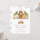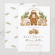 Celebra a tu pequeño salvaje con esta adorable invitación de baby shower de bosque! Con delicados animales del bosque pintados con acuarela como un ciervo, conejo, erizo, zorro y oso junto a un cómodo conjunto de bebé, este diseño captura un cálido encanto rústico del bosque. Rodeado de delicada vegetación de pino y tonos neutros terrosos, es perfecto para un tema de baby shower inspirado en la naturaleza, el bosque o rústico. El diseño coordinado de ramas de pino en el reverso añade un toque elegante. Totalmente personalizable con los detalles de tu evento, esta invitación es ideal para una baby shower de niño o una celebración de bosque neutra en cuanto al género.