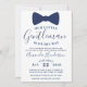 Esta Invitación de Baby Shower de Caballero con Corbata de Lazo Azul es perfecta para cualquier pequeño hombre, caballero o baby shower de corbata de lazo. El diseño elegante es perfecto para establecer el tono para una ocasión de corbata negra.