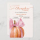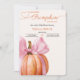 Invitación a la pequeña calabaza de Baby Shower - Chica rosado Autumn Tema Celebra tu calabaza en el camino con esta encantadora invitación a la ducha de bebé para un chica. Con una calabaza acuática atada con un delicado arco rosado, este diseño de otoño es perfecto para crear una acogedora y elegante ducha para bebés. Todo el texto es totalmente personalizable con sus propios detalles.