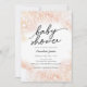 Invite a sus huéspedes a su ducha de bebé con esta invitación de Baby Shower floral Delicate Peach con flores acuáticas y un fondo con motivos. Adecuado para una madre que espera una niña, o cambia el color de fondo para que se adapte a su fiesta. © Mini Impresiones Moi