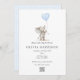 Celebra la próxima llegada de un pequeño con esta encantadora invitación de baby shower que presenta un dulce elefante en acuarela sosteniendo un globo en forma de corazón azul. El diseño minimalista y los tonos pastel suaves lo hacen perfecto para un baby shower de niño. Personaliza fácilmente el texto con los detalles de tu evento y comparte la alegría con amigos y familiares con estilo. Un código QR en la parte inferior permite a los invitados acceder rápidamente a tu registro.