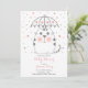 Celebra la próxima llegada de tu pequeño con esta adorable invitación de baby shower con tema de gatos. Con un gatito de dibujos animados regordete con mejillas sonrosadas bajo un paraguas decorado con corazones, este diseño está lleno de encanto y fantasía, perfecto para cualquier amante de los gatos o celebración con tema pastel.