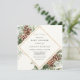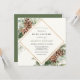 La elegante invitación a la ducha infantil con temática invernal presenta un marco dorado rodeado de una acuarela verde, pinos y flores de invierno. Personalice su información o haga clic en "Haga clic en el personalizar más adelante" para editar estilos de fuente, tamaño y colores.
