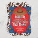 Una divertida invitación a una ducha de bebé con temática occidental para la futura mamá que espera niños trillizos. ¡Inviten a la gente a ensillar y celebrar la llegada de tres vaqueros!