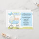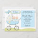 Invite a las huéspedes a los gemelos Baby Shower con esta invitación azul adorable de Baby Shower del cochecito. Algunos elementos por www.nitwitcollections.com autorizan #41088. Esta tarjeta azul linda ofrece a un bebé adorable en un cochecito.