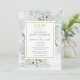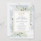 Con delicadas ilustraciones de verde en acuarela sobre un fondo de escarcha invernal, esta elegante invitación de baby shower para parejas se puede personalizar con las iniciales de monograma dorado y la información del evento especial. Diseñado por Thisisnotme©