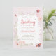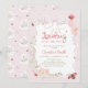Una suave y elegante invitación de baby shower con flores rosadas, delicada vegetación, mariquitas encantadoras y un lazo elegante. La paleta de colores pastel suaves y el estilo de jardín romántico hacen que este diseño sea perfecto para un baby shower de niña. Artículos coincidentes disponibles.