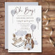¿Estás listo para embarcarte en un encantador viaje de regreso en el tiempo y celebrar la inminente llegada de un bebé de la manera más elegante y caprichosa? No hay más que fijarse en esta invitación a la ducha de bebé de color acuarela.