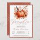 Una Pequeña Calabaza Invitación De Baby Shower De Otoño. Esta encantadora Invitación de Baby Shower cuenta con un hermoso guión de caligrafía con calabaza naranja y flores otoñales, la manera perfecta de acentuar la ducha de tu pequeña. Personaliza fácilmente la mayor parte de la redacción para que coincida con tu evento. Los colores del texto y del fondo son totalmente editables, sólo tienes que hacer clic en el botón "Editar usando la herramienta de diseño" para editar cualquiera de los elementos que deseas cambiar.