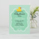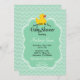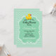 Una bonita invitación a una ducha de bebé neutra de género verde menta con un pato amarillo en la parte superior. Un fondo de chevron de menta y un marco lindo para el texto con ese lindo pato de goma hace de esto una dulce ducha neutra para bebé bebé niño o chica.