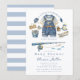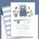 Celebra a tu pequeño pescador con esta encantadora invitación para baby shower con tema de pesca. Con un diseño de estilo acuarela que incluye un traje de bebé con overol de mezclilla, caña de pescar, peces y detalles náuticos en tonos suaves de azul, este diseño crea un ambiente acogedor y rústico inspirado en el lago. Combinado con un clásico fondo de rayas azules, es perfecto para un baby shower de niño, un tema de "pequeño pescador" o para padres que aman el aire libre. Totalmente personalizable con los detalles de tu evento, esta invitación es ideal para celebraciones con temática lacustre, náutica o de pesca.