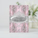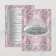Invitación de Baby Shower Rosa y Plateada. Diseño elegante de damasco plateado y tiara de joya bonita. Tenga en cuenta: ¡Todas las imágenes planas! ¡No tienen lazos ni joyas reales!