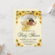 Invitación de baby shower de sirena africana con adorable sirena africana bebé y concha de clámide en un bonito fondo de girasoles y puntos amarillos. Esta linda invitación de baby shower de sirena se personaliza fácilmente para su evento simplemente agregando los detalles de su evento.