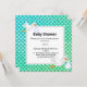 puntos rodeando la invitación junto con 2 cigüeñas lindas, baby shower, celebración bonita personalizable