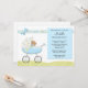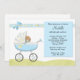 Invite a las huéspedes a Baby Shower con esta invitación azul adorable de Baby Shower del cochecito. Algunos elementos por www.nitwitcollections.com autorizan #41088. Esta tarjeta azul linda ofrece a un bebé afroamericano en un cochecito.