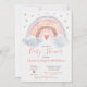 ¡Celebra la próxima llegada de tu pequeño con esta invitación a la ducha de bebé con tema de arco iris y de género neutro! Este diseño presenta un diseño de color arcoiris y corazones en una paleta de colores pastel mullidos.