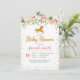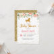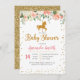 Invitación de Baby Shower del caballo del carrusel con el melocotón hermoso floral y el confeti del oro.