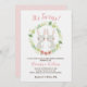 La invitación de la fiesta de bienvenida al bebé de los gemelos de este chica ofrece una guirnalda floral del follaje sobre todo verde y dos conejitos grises y rosados lindos. El fondo es blanco y la parte posterior de la invitación es un modelo de lunar rosado y poner crema polvoriento. El mismo diseño de la fiesta de bienvenida al bebé del conejito está también disponible para un chica en la tienda. La invitación gemela de la fiesta de bienvenida al bebé del conejito de este chica está lista para ser personalizado.
