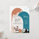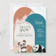 Cute Safari tema del bosque baby ducha tarjeta de plantilla de invitación con un ilustracion dibujado a mano de un panda, conejo, squeral, . El texto dice "ducha de bebé". Invitación perfecta de neutralidad de género.
