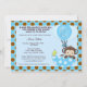 La invitación adorable de la fiesta de bienvenida al bebé del mono en sombras azules y lunares marrones, perfecciona para un mono del bebé del MUCHACHO… con un pequeño chirrido en un paraguas