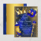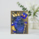 Tarjeta postal de invitación de baby shower de príncipe azul real con adorables elementos de príncipe azul y dorado en un hermoso fondo azul real y dorado. Esta invitación de baby shower de príncipe real se personaliza fácilmente con los detalles de su evento.