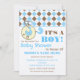 Invitación de Baby Shower - Diaper Pin Blue & Brow