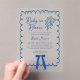 Invitación de Baby Shower Doodle Baby in Bloom - con arte y borde doodle dibujados a mano de moda. Mostrado en azul. Puede cambiar fácilmente el color de todo en la invitación. Otros colores estarán disponibles.