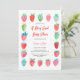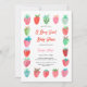 Esta dulce diseño de fruta presenta una linda y trendy invitación de baby shower con fresas pintadas a mano en rojo y rosa con pequeños acentos azules y verdes. ¡Vea toda la colección para más artículos coincidentes! Arte original de Caroline Bonne Müller
