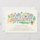Diseño adorable de la invitación a la ducha para bebés de animales de safari por Shelby Allison con un león, elefante, mono, hipopótamo, lagarto, mariposas y otros pequeños criadores de selva.