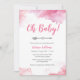 Invitación de Baby Shower con la cabecera con letras a mano y acuarelas rosas bonito y una flecha decorativa y página posterior con motivos cardíacos.
