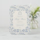 Esta elegante y bonita invitación de baby shower estilo toile de jouy presenta un estilo clásico azul y crema, y una hermosa fuente script combinada con una tipografía tradicional y clásica para un sentimiento atemporal. Un monograma personalizado permite personalizar este diseño para la futura mamá. Perfecto para entornos de baby shower sofisticados o para futuras madres que disfrutan de una estética femenina y delicada.