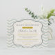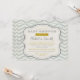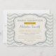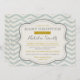 Este Baby Shower Invitation presenta un desordenado fondo de Chevron verde azulado/azul con un marco gris y texto en colores gris y dorado con tipografía moderna.