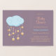 Nube estilizada con cuentas colgantes y estrellas doradas que parecen un bebé móvil. Los colores del diseño son neutros en cuanto al género.