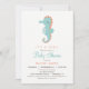 Invitación a la ducha de bebé nautical Seahorse. Invite a que se presenten corales y caballitos de mar de color agua.